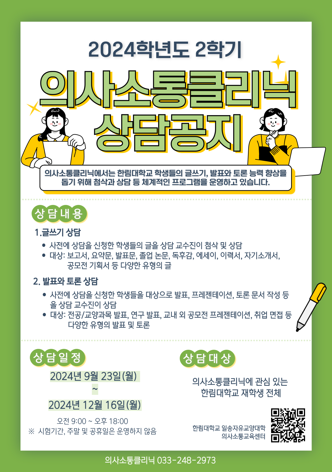 2024-2학기 의사소통클리닉 상담 신청 안내