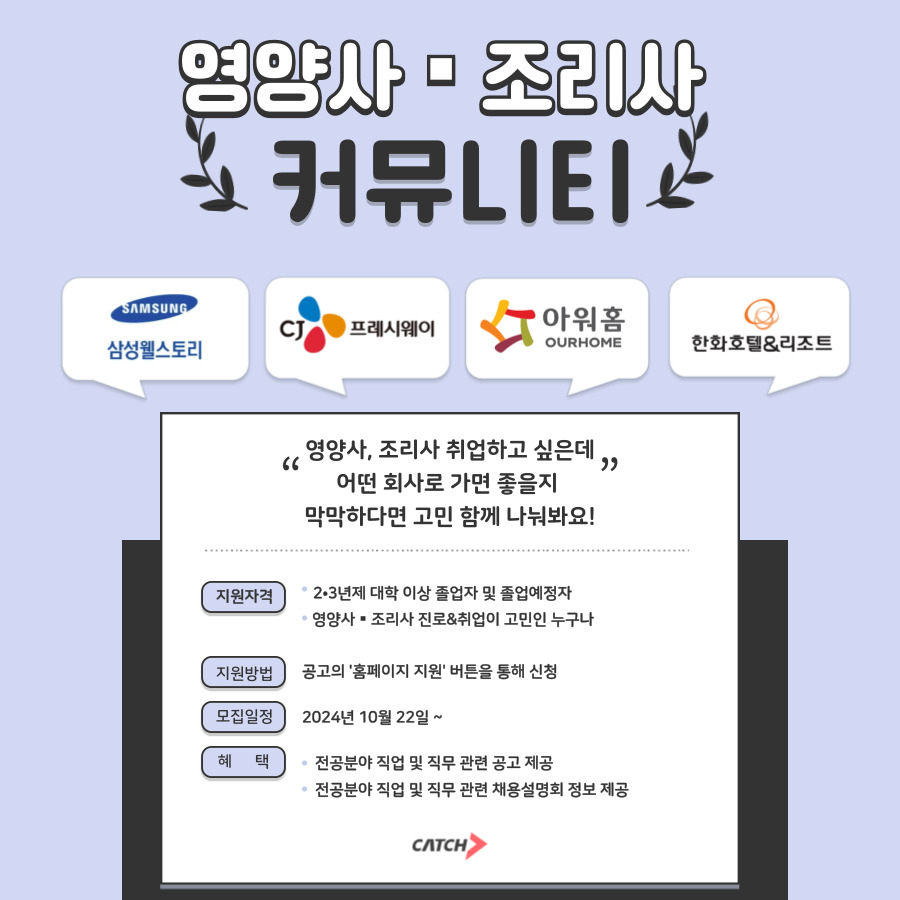 * 참고URL  : [진학사] 영양사-조리사취업정보 커뮤니티 참가자 모집 (~상시채용) | 캐치