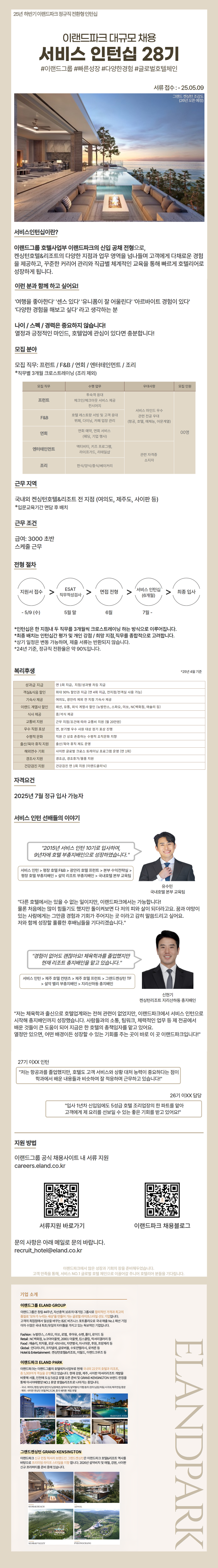 [정규직 전환형 인턴십] 2025 하반기 이랜드파크 서비스인턴십 28기 채용