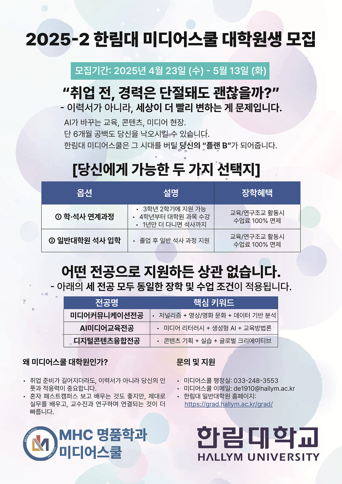 2025-2 한림대 미디어스쿨 대학원생 모집