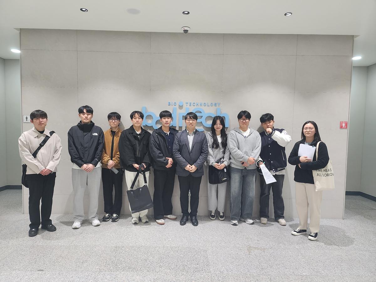 2023년 10월 27일(금) 춘천 소재 체외진단기기 개발업체인 (주)바디텍메드에 박종민 교수와 학부생 9명이 방문하여 체외진단 기술분야에 대한 소개와 향후 전망에 대해 청취하고 생산/품질관리 현장을 견학하였다.