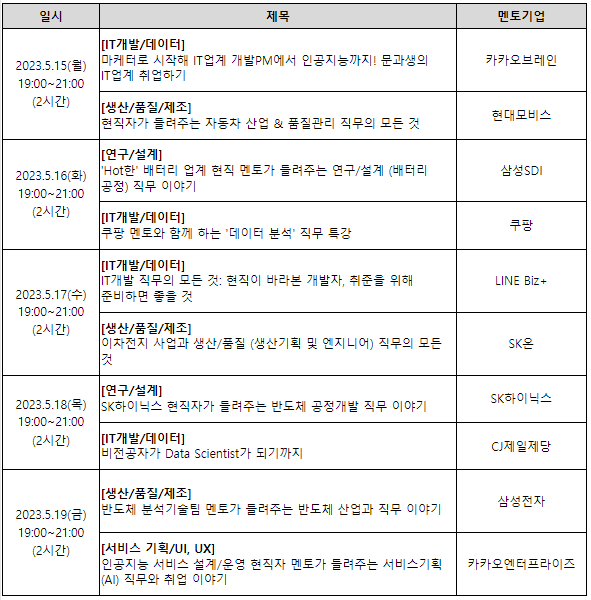 * 기업 현직자 상황에 따라 직무 및 일정이 일부 변경될 수 있습니다.