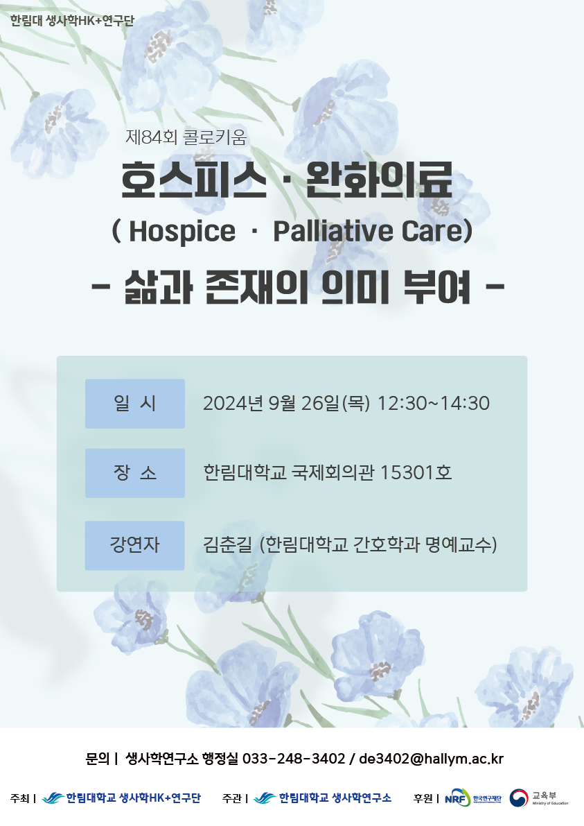 [생사학연구소] 제84회 콜로키움 (9/26, 목) 개최 안내